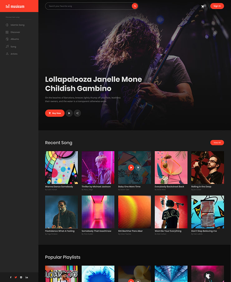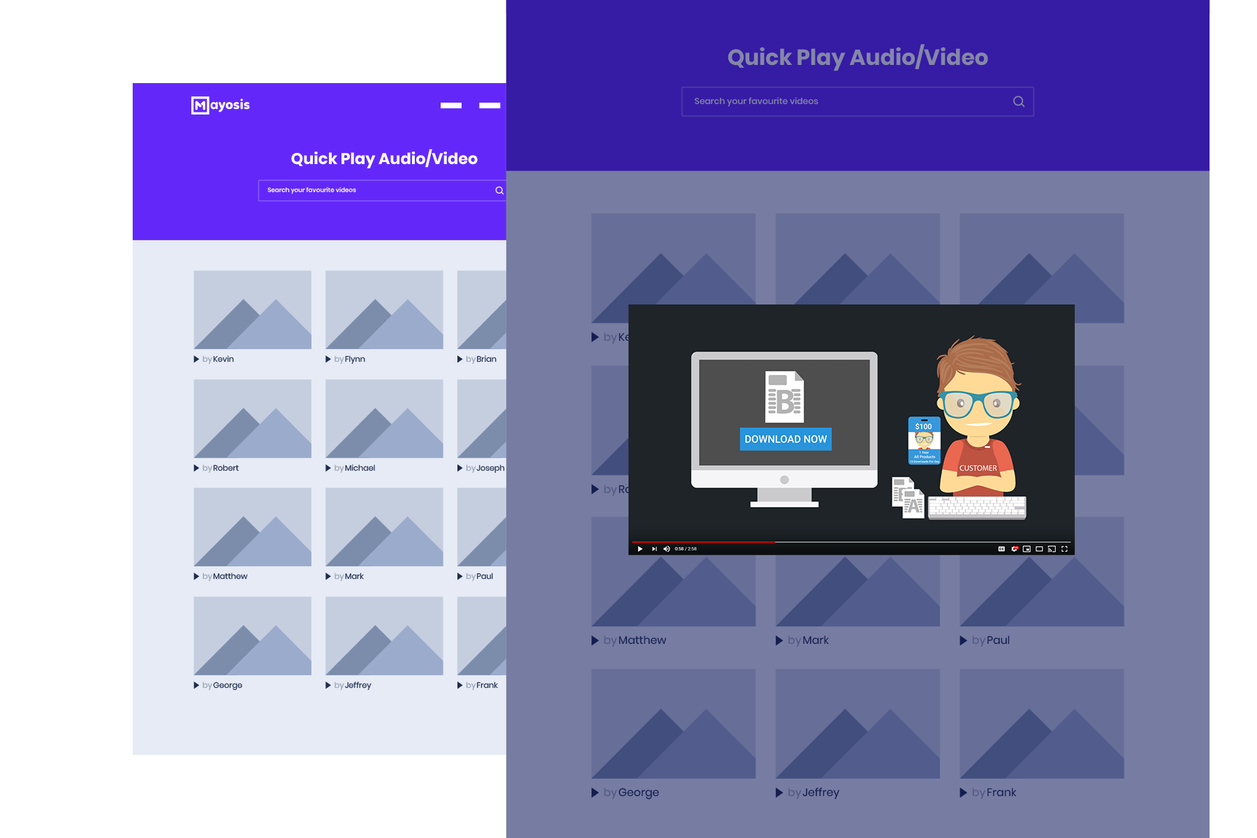 Play audio & video in one click from home page. Beside product title play button available for audio & video play.